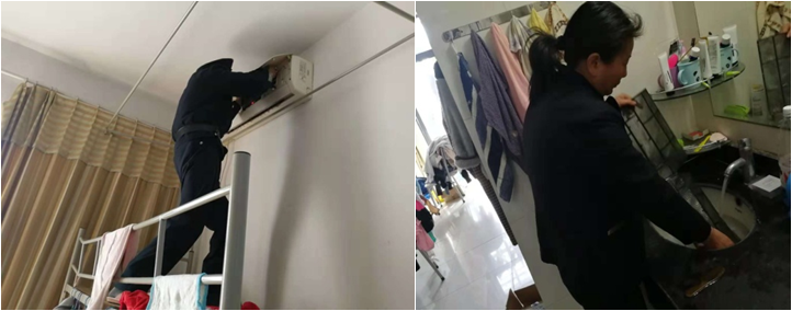 2018年12月6日,萬(wàn)楊物業(yè)京東項(xiàng)目為京東揚(yáng)州客服中心的員工宿舍逐一清洗了空調(diào)濾網(wǎng)。這兩天宿管阿姨們晚上聽(tīng)到的最多的一句話就是:“太冷了,我要開(kāi)空調(diào)!钡搅嗽缟蠁T工們?nèi)ド习嗟臅r(shí)候有員工就反映空調(diào)效果不好。于是宿管阿姨們就請(qǐng)保安人員配合將宿舍內(nèi)的空調(diào)濾網(wǎng)都清洗了一遍,保安人員先爬上梯子把空調(diào)濾網(wǎng)拆下來(lái),然后遞給宿管阿姨,阿姨們又趕緊拿去清洗再擦干。然后再遞給保安人員裝上去。