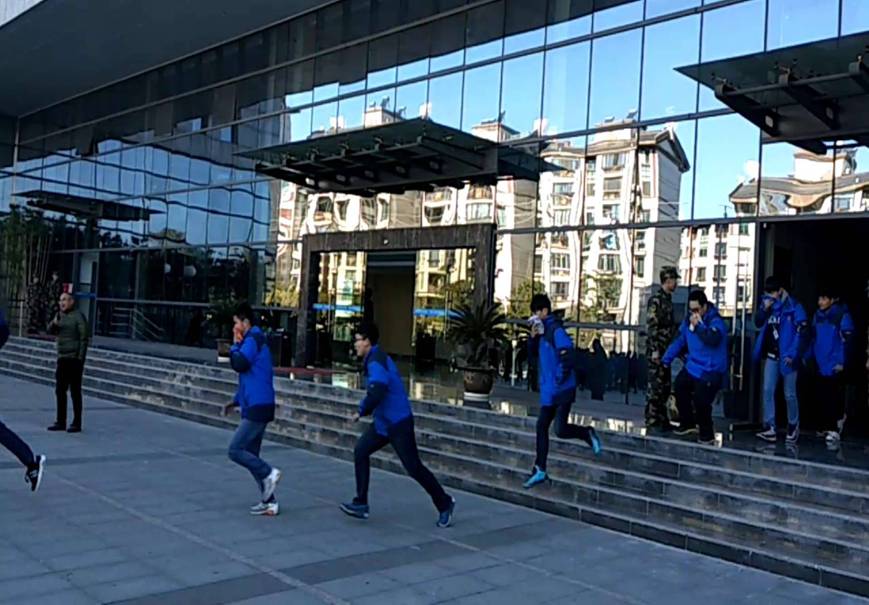 正在上課的師生們聽到警報(bào)聲后,教師第一時(shí)間組織學(xué)生有序疏散,告知學(xué)生不得乘坐電梯,下樓梯時(shí)不要慌張,不擁擠、用毛巾或棉衣,彎腰捂住口鼻,離開教室,從消防樓梯有序下樓。江蘇萬楊物業(yè)秩序維護(hù)隊(duì)長帶著2名隊(duì)員分別從兩邊的消防通道沖上樓,不停的問逃生的教師和學(xué)生:“教室里還有沒有學(xué)生了”。當(dāng)萬楊秩序維護(hù)部隊(duì)長清場到5層時(shí),有一個(gè)學(xué)生去廁所,聽到報(bào)警,電梯已被迫停,呆坐在教室里,走投無路,隊(duì)長趕緊讓該學(xué)生立即從消防樓梯下樓,到廣場。萬楊其他秩序維護(hù)員分別沖向各樓層,不停的提醒學(xué)生,樓梯上不能停留,注意不能擁擠,小心腳下,在不到五分鐘的時(shí)間內(nèi),全體師生安全撤離教室,到達(dá)安全地點(diǎn)。
