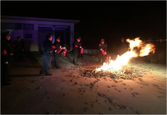 演練開始時(shí),物管處負(fù)責(zé)人就此次活動(dòng),從三個(gè)方面進(jìn)行了指導(dǎo)性講話:1、開展森林火災(zāi)消防演練重要性的學(xué)習(xí)宣傳,明確此次活動(dòng)是中央公園項(xiàng)目安全工作的重要組成部分,是前期系列安全大檢查的延續(xù)和補(bǔ)充,要求隊(duì)員們?cè)谒枷肷辖y(tǒng)一認(rèn)識(shí),要具有安全工作的高度責(zé)任感和使命感;2、開展了四懂四會(huì)基本常識(shí)的宣講,懂樹林、蘆葦蕩火災(zāi)的危害性、懂防火災(zāi)的措施、懂滅火的方法、懂逃生的方法,會(huì)報(bào)警(TeL:119)、會(huì)使用消防器材、會(huì)撲救初期火災(zāi)、會(huì)組織人員疏散;3、火災(zāi)實(shí)例解析:2017年初,園區(qū)蘆葦蕩火災(zāi),項(xiàng)目從發(fā)現(xiàn)火情到投入滅火,投入的人員和滅火器材力度應(yīng)該很大,但是由于隊(duì)員實(shí)戰(zhàn)經(jīng)驗(yàn)不足,最后還是專業(yè)人員到場(chǎng)才解除了火情。事后分析,專業(yè)消防隊(duì)員就地取土滅火的辦法,遠(yuǎn)優(yōu)于手持式滅火器使用效果。