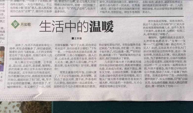 2017年12月3日,揚(yáng)州晚報(bào)A12夕陽(yáng)紅版面,報(bào)道了一篇退休老同志王懷德老人掇寫的《生活中的溫暖》文章。文中較大篇幅提到了江蘇萬(wàn)楊物業(yè)駐中央公園項(xiàng)目,保安隊(duì)員樂于助人的事跡,引起了項(xiàng)目全員的共鳴——“好樣的,萬(wàn)楊保安!”