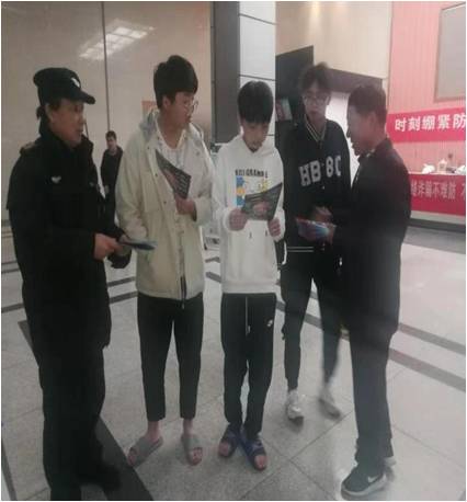 上午9點半,物業(yè)人員分成兩組,物業(yè)經(jīng)理貝宏波帶領客服李德敏及工程主管董劍珉到各企業(yè)進行防詐騙宣傳,發(fā)放宣傳冊,講解詐騙形式,提醒企業(yè)員工有可疑情況要立刻報警,保安隊長褚庭衛(wèi)帶領保安班長周根林在人員密集的宿舍區(qū)張貼防詐騙畫報,宿舍班長王春銀在現(xiàn)場給過往人員講解防詐騙知識,并在園區(qū)物業(yè)群宣傳防詐騙的方法。