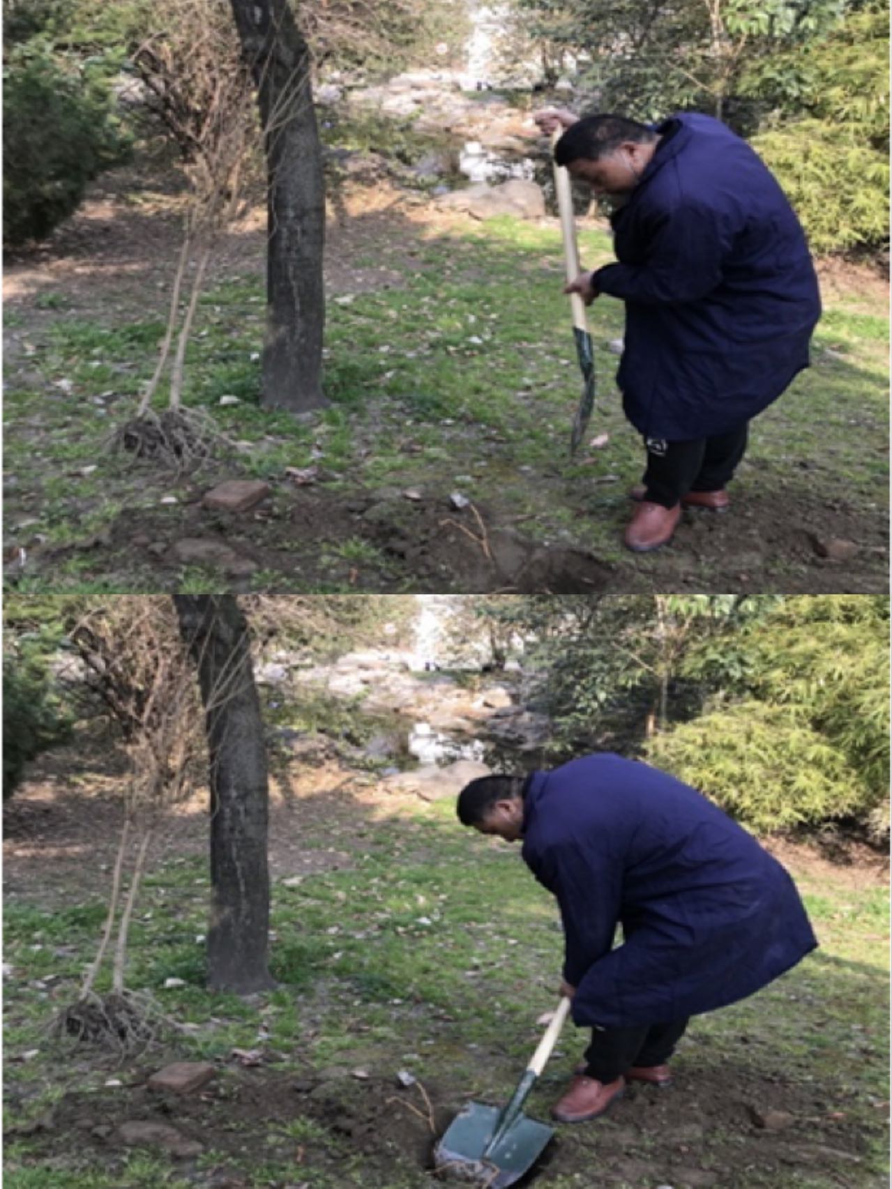 明媚的陽(yáng)光下,大家個(gè)個(gè)熱火朝天地忙碌著,用實(shí)際行動(dòng)詮釋著對(duì)大自然的熱愛(ài)。黨員、社區(qū)人員、物業(yè)人員互相密切配合著,分工明確,手持鐵鍬、樹(shù)苖、水桶,你挖坑,我扶苗,她填土……最后還不忘在小樹(shù)苗周?chē)逻^(guò)的泥土上踩上幾腳,夯實(shí)泥土,讓小樹(shù)苗茁壯成長(zhǎng)。