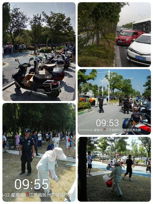 董學(xué)虎在當班員工中抽調(diào)了5名保安、3名保潔,強化該區(qū)域的巡查管控力度,隊員們簡單分工后,一邊指引機動車沿濱水路兩邊有序停放,一邊將隔離石球進行了移位,讓滯留濱水路上的非機動車分流至園區(qū)便道減少道路通行壓力;同時,引導(dǎo)學(xué)生家長步入園區(qū)兒童林作短暫休息和等待,力爭最大程度的確保人身安全;現(xiàn)場的保潔大姐們也沒有閑著,全方位撿拾著該區(qū)域垃圾,力求為學(xué)生家長創(chuàng)造“舒適、潔凈”的環(huán)境。