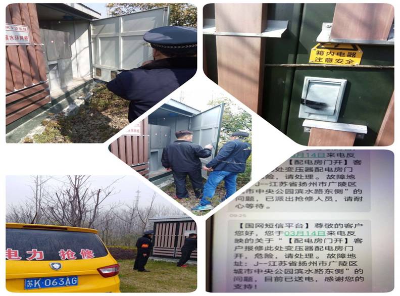 2018314日上午9點左右,保安班長嚴長國、車巡隊員方德元,例行巡查至濱水路東側(朱家河閘站北),發(fā)現(xiàn)一組高壓電箱柜門大開,不設防的電器設備、裸露電纜接頭,存在著極大的安全隱患。社會人員,特別是問題人員不慎進入接觸,都有可能造成嚴重的后果。于是隊員將情況通過項目工作群進行了通報。物業(yè)負責人收獲信息后立即進行了核實查詢,確認該處高壓電柜是由揚州市電力部門統(tǒng)一管理的,物業(yè)沒有鑰匙柜門無法關閉。
