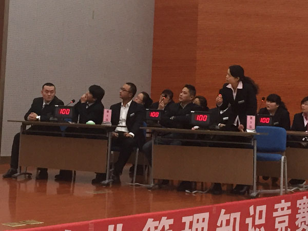 在搶答題環(huán)節(jié)競爭非常激烈,為了確保公平,主持人先讓大家都試一下?lián)尨鹌,每組都預(yù)演了一遍搶答成功和搶答犯規(guī)的情況。當(dāng)主持人說完“開始搶答”后大家紛紛快速而有力的按下手中的搶答器,選手們有的提前搶答犯規(guī),被其他組選手搶答得分;有的隊(duì)發(fā)揮的不理想,搶到的答題機(jī)會(huì)很少,就在小聲犯嘀咕,是不是搶答器壞了?其實(shí)在每一組開始之前,都讓大家分別試了下?lián)尨鹌,確認(rèn)搶答器正常都能使用。有的參賽隊(duì)似乎找到了搶答竅門,接下來的四五個(gè)問題,都搶到了,并且都得了分。其他的隊(duì)有點(diǎn)坐不住了,但還是沉著冷靜,不慌亂,在比賽現(xiàn)場表現(xiàn)出最佳的精神面貌。賽后有人感慨到:“小小搶答器,其實(shí)也能考驗(yàn)員工的智慧和臨場能力,不管輸贏,這對(duì)每位選手來說都是一次難得的體驗(yàn)機(jī)會(huì)!