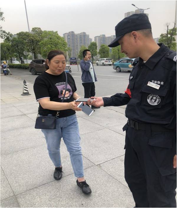 老周撿起手機,立即用對講機向萬楊物業(yè)城慶廣場項目部匯報。按照項目部規(guī)定,保安班長急忙趕來和老周在原地繼續(xù)等待失主,同時想方法盡量和機主聯(lián)系上。由于手機設(shè)置了密碼,兩名保安人員并不能打開手機主動聯(lián)系上機主的聯(lián)系人,在原地等待機主是最好的辦法。周友杰繼續(xù)忙碌著車輛秩序維護(hù)……大約過了半小時,一位中年婦女出現(xiàn)在西崗?fù)ね\囂,焦急地尋找著什么。老周和班長連忙走上前,經(jīng)過詢問、核實,確定此人就是手機機主。老周當(dāng)即交還失物,這位女士當(dāng)場解開手機密碼,激動萬分,連聲感謝……