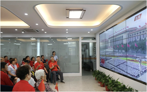 當(dāng)天上午7時45分,文昌花園中心廣場舉行了隆重的升國旗儀式。在莊嚴(yán)的《國歌》聲中,鮮艷的五星紅旗冉冉升起,社區(qū)黨員、物業(yè)人員和少先隊(duì)員們肅立行注目禮。隨后,大家一起來到社區(qū)黨群服務(wù)中心大廳,手持黨旗,認(rèn)真觀看直播。