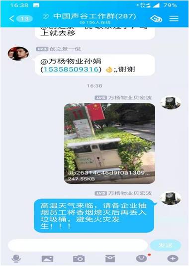 滅火后,三個(gè)人一起打開(kāi)垃圾桶查找原因,發(fā)現(xiàn)起火原因是因?yàn)闊燁^沒(méi)有掐滅所引起的,所幸保安細(xì)心發(fā)現(xiàn)及時(shí),避免了火災(zāi)隱患,針對(duì)此事,項(xiàng)目貝經(jīng)理將起火的照片原因發(fā)到了園區(qū)群里,提醒大家千萬(wàn)要注意未熄滅的煙頭別亂扔,杜絕此類事件的再次發(fā)生!!   (江蘇萬(wàn)楊物業(yè)信息基地二期  貝宏波 )