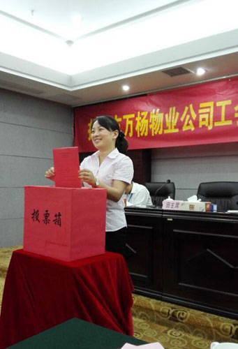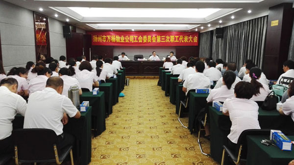 隨著國際歌的響起,會議首先由孫霞致開幕詞,李萍同志作揚(yáng)州市萬楊物業(yè)管理服務(wù)有限公司工會第三次會員代表大會籌備工作報(bào)告。吳玲玲同志作萬楊物業(yè)工會第三次會議代表資格審查和選舉辦法報(bào)告。