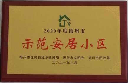2020年,揚(yáng)州市住建局、揚(yáng)州市文明辦、揚(yáng)州市民政局三部門聯(lián)合出臺(tái)《關(guān)于在全市開展文明安居小區(qū)創(chuàng)建活動(dòng)實(shí)施意見(jiàn)》,致力打造文明祥和的保障房小區(qū),切實(shí)提高居住群眾的獲得感、安全感和幸福感。   佳家如意園項(xiàng)目部緊緊圍繞著“幸福家園、共建共享”主題,積極開展文明安居小區(qū)創(chuàng)建活動(dòng),經(jīng)過(guò)自主申報(bào)、實(shí)地考察等評(píng)選程序。2021330日下午,在市住房和城鄉(xiāng)建設(shè)局會(huì)議室召開推進(jìn)2021年創(chuàng)建文明安居小區(qū)工作會(huì)。會(huì)議上表彰了保障房小區(qū)“2020年度揚(yáng)州市示范安居小區(qū)”榮譽(yù)稱號(hào)。佳家如意園項(xiàng)目部榮獲2020年“揚(yáng)州市示范安居小區(qū)”榮譽(yù)牌。