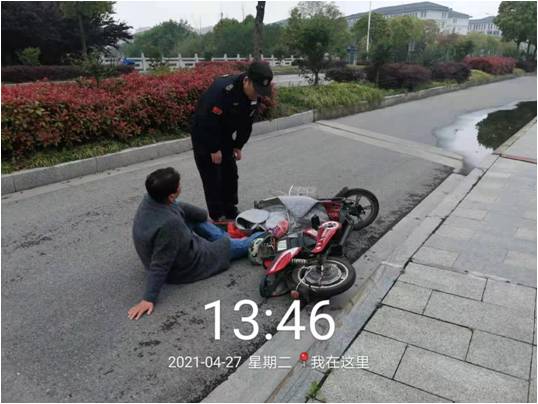4月27日下午1點45分,在廖家溝城市中央公園蒙古包濱水路東側(cè)的非機動車道上,一名60多歲的女士騎電動車不小心摔倒在路邊……
