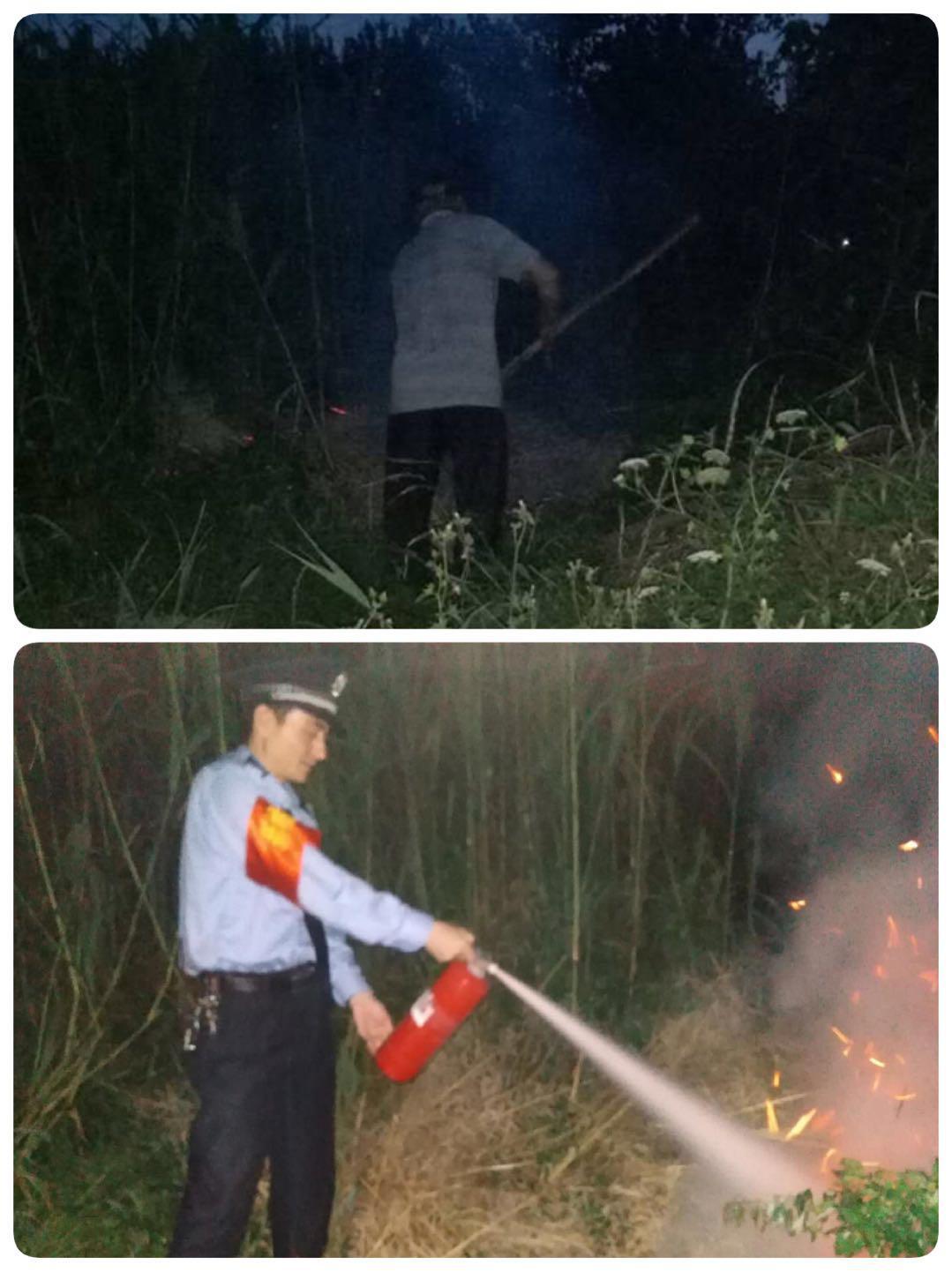 執(zhí)行晚班巡邏任務(wù)的車(chē)巡隊(duì)員許兵、汪長(zhǎng)林見(jiàn)狀,立刻通過(guò)中央公園工作群將情況上傳;同時(shí)按照項(xiàng)目火情預(yù)案和日常訓(xùn)練要求,許兵、汪長(zhǎng)林手提車(chē)載滅火器奔向著火點(diǎn),F(xiàn)場(chǎng)看見(jiàn)一位70多歲老大爺正多點(diǎn)位點(diǎn)燃油菜秸稈,隊(duì)員們邊大聲制止邊打開(kāi)滅火器滅火,好在火勢(shì)尚處初期秸稈火情很快得到了解除。滅火過(guò)后,隊(duì)員許兵、汪長(zhǎng)林兩人著裝汗?jié),煙塵、顆粒也粘滿(mǎn)了全身。