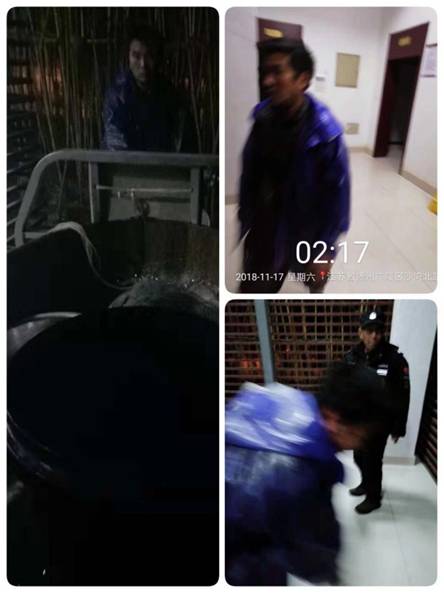 20181117日凌晨2點(diǎn),江蘇萬(wàn)楊物業(yè)廖家溝城市中央公園秩序維護(hù)隊(duì)員連日的蹲守關(guān)注,終于“抓到”了固廁違規(guī)取用水人員。