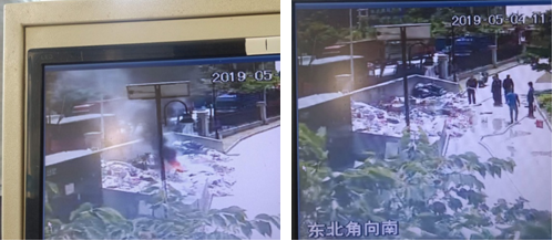5月4日 上午11點左右,聯(lián)誼南園聯(lián)福苑物業(yè)服務(wù)中心接到監(jiān)控室的對講機(jī)呼叫,原來,隊員從監(jiān)控中發(fā)現(xiàn)5號樓旁邊的建筑垃圾臨時堆放池中,已有濃煙散發(fā)出來,垃圾池中有可燃物在燃燒并迅速蔓延,物業(yè)李經(jīng)理立即到現(xiàn)場,并通知在崗秩序人員請求支援,并從門崗和著火現(xiàn)場附近樓棟找來滅火器滅火,前后用掉近十只滅火器才將火勢得以控制。同時通知趕來支援的隊員尋找就近消火栓并接上水帶打開水閥,在短短5分鐘內(nèi)將火完全撲滅,避免了一場安全事故。