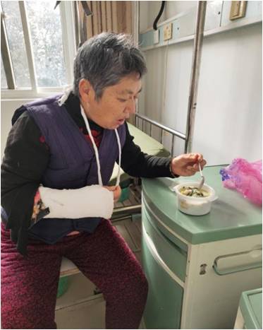 2020年12月30日上午,江蘇萬楊物業(yè)中央公園項(xiàng)目處根據(jù)公司總部專題會(huì)議精神,組織人員開展“鏟雪除冰”行動(dòng)。在鏟雪過程中,保潔大姐安文鳳不慎滑倒,造成了右手腕部骨折,得知消息后韋長英經(jīng)理第一時(shí)間開車將她送至了廣陵區(qū)骨科醫(yī)院就診;由于需要住院治療,安大姐的家人均不在身邊,吃飯成了問題,韋經(jīng)理就堅(jiān)持自己給她做飯、送飯……“安大姐,吃什么補(bǔ)什么,希望你吃了排骨湯,胳膊早一點(diǎn)好起來!弊宰≡阂詠恚蝗杖,今天是排骨山藥湯,明天是鯽魚豆腐湯,后天是梅條肉雞蛋湯……天天不同樣,做到營養(yǎng)搭配、合理膳食,安文鳳享受著“病號(hào)餐”的特殊照顧。