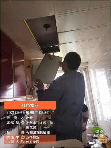 征得了老人的同意后,趙工小心地卸下了幾塊集成吊頂,將插座斷掉的電線重新接好。在趙工維修的過程中,張女士正好買菜回家了,看見趙工正在接線,張女士感謝地說:“真的麻煩你們了!我想說看看能不能請(qǐng)物業(yè)幫忙,沒想到你們一大早就來了!”小王回答:“油煙機(jī)不能工作,中午燒菜家里油煙要嗆人了!我們要爭(zhēng)取在中午做飯之前幫你恢復(fù),肯定要早點(diǎn)來。以后有什么要幫忙的地方,我們能幫的一定盡力幫!”大約花了半個(gè)多小時(shí),趙工把插座維修好了,看著能重新正常工作的抽油煙機(jī),張女士不停感謝:“要修這個(gè)還要拆吊頂,真的辛苦工程師傅了!”維修完畢后,趙工將卸下的吊頂逐一恢復(fù),便與小王一道離開了。(江蘇萬楊物業(yè)佳家花園束源源)
