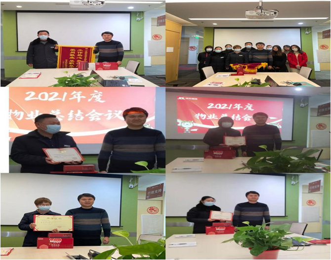 最后由甲方行政經(jīng)理朱經(jīng)理發(fā)表講話,在講話中朱經(jīng)理充分肯定了這一年來物業(yè)公司的辛勤付出,對(duì)物業(yè)各模塊為行政各方面工作的支持表達(dá)了感謝,并給各模塊頒發(fā)了榮譽(yù)證書。前臺(tái)被評(píng)為“最美前臺(tái)”,保潔組被評(píng)為“服務(wù)之星”,工程組被評(píng)為“安全衛(wèi)士”,宿管組被評(píng)為“貼心管家”,整個(gè)物業(yè)團(tuán)隊(duì)被評(píng)為“最佳合作伙伴”。重點(diǎn)表?yè)P(yáng)了秩序維護(hù)組這一年的工作,在人員精減的情況下服務(wù)水平和質(zhì)量依然有很大的提高,授予了秩序維護(hù)部錦旗一面。會(huì)議結(jié)束前,物業(yè)行政人員和項(xiàng)目管理人員合影留念。