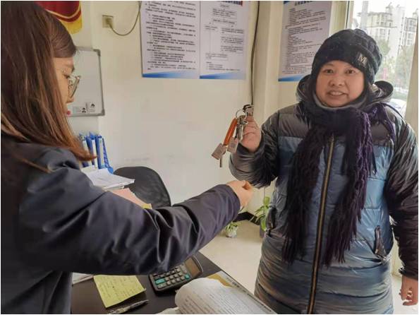 小陳了解事情經(jīng)過后,先讓王大爺放心去買菜,通過查看發(fā)現(xiàn)鑰匙上面有佳家花園小區(qū)專用的門禁卡。小陳立即打開電腦,通過小區(qū)門禁系統(tǒng)查詢得知鑰匙是1602室夏阿姨家的。小陳立刻聯(lián)系了失主夏阿姨。夏阿姨接到電話才知道自己鑰匙丟了,趕緊跑到物業(yè)領取,小陳經(jīng)過核對確認后將鑰匙歸還給了她。夏阿姨連聲說著“太感謝你們了,想不到這個小小門禁卡有這功能,你們物業(yè)做的真細心,早上我去買菜,走到38棟隨手扔垃圾時將鑰匙遺落在垃圾桶旁都不知道,如果不是物業(yè)聯(lián)系,真不知道鑰匙丟了呢。家里所有鑰匙都在這一串上,要是丟了,重配需要花錢不說,關鍵還要耽誤功夫太麻煩了!