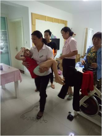 到了業(yè)主家,看見一個瘦瘦的小孩趟在沙發(fā)上,旁邊桌上扔著一堆沾著血跡的面紙,奶奶在旁邊著急的束手無策,看見物業(yè)人員到了,奶奶都著急的說不出話來,小王一邊安慰著奶奶一邊趕緊上前查看,看見小孩鼻子還在流血,建議說:“這樣不行,盡快送社區(qū)醫(yī)院,我先聯(lián)系我們小區(qū)車管員,請他把巡邏車開來!辈灰粫策壾嚲蛠砹,王福萍抱起小孩就下樓,上了巡邏車直奔社區(qū)醫(yī)院,到了社區(qū)醫(yī)院,醫(yī)生檢查了一下說,這邊無法處理趕緊去蘇北醫(yī)院,小王掏出手機(jī)就為業(yè)主聯(lián)系出租車,孩子奶奶連聲說:“謝謝!謝謝!”小王和小武直到送她們上了出租車才放下心來。