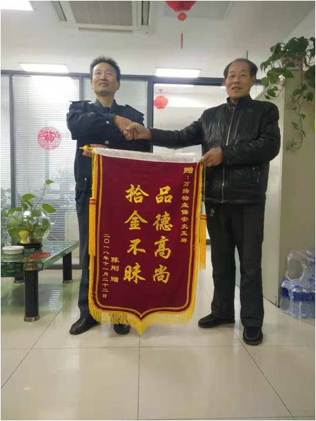 20181122下午210左右,有一位中年男子肩挎一個(gè)背包走進(jìn)了邗江區(qū)維揚(yáng)路邗江稅務(wù)局第一稅務(wù)分局,取號(hào)辦理業(yè)務(wù),220匆匆離開(kāi)。該項(xiàng)目秩序維護(hù)員史玉祥,在稅務(wù)大廳像平常一樣巡視時(shí),抬頭發(fā)現(xiàn)柜臺(tái)上面有一個(gè)黑色錢(qián)包,環(huán)顧整個(gè)大廳,沒(méi)有一個(gè)辦事人員,等待了十幾分鐘后,沒(méi)有等來(lái)尋找錢(qián)包的人,史玉祥立即慎重其事,把這一情況立即匯報(bào)給了江蘇萬(wàn)楊物業(yè)公司安保負(fù)責(zé)人,同時(shí)也上報(bào)了稅務(wù)局領(lǐng)導(dǎo),稅務(wù)局領(lǐng)導(dǎo)隨即派人與史玉祥一起打開(kāi)錢(qián)包,發(fā)現(xiàn)百元現(xiàn)金若干張、銀行卡八張?紤]到失主丟失財(cái)物后定是萬(wàn)分焦急,稅務(wù)局領(lǐng)導(dǎo)立即調(diào)取大廳監(jiān)控,在初步確認(rèn)失主后,立即通過(guò)多方尋找聯(lián)系,終于聯(lián)系上了失主,失主是寶應(yīng)人,在辦理業(yè)務(wù)過(guò)程中因證件不全加上有急事辦理,匆忙離開(kāi)中將錢(qián)包忘拿了。得知錢(qián)包下落的陳失主心情特別激動(dòng),要重謝史玉祥,被他婉言拒絕了。失主知道了史玉祥工作單位是江蘇萬(wàn)楊物業(yè)公司,立即定制了一面錦旗送到了萬(wàn)楊物業(yè)公司企業(yè)服務(wù)部,當(dāng)面感謝史玉祥拾金不昧的行為。史玉祥同志拾金不昧的高尚品質(zhì)和高度負(fù)責(zé)的工作態(tài)度贏得了客戶的高度贊賞,也為萬(wàn)楊物業(yè)管理服務(wù)公司贏得了良好的社會(huì)聲譽(yù)。